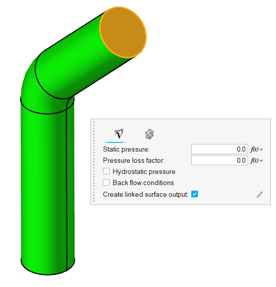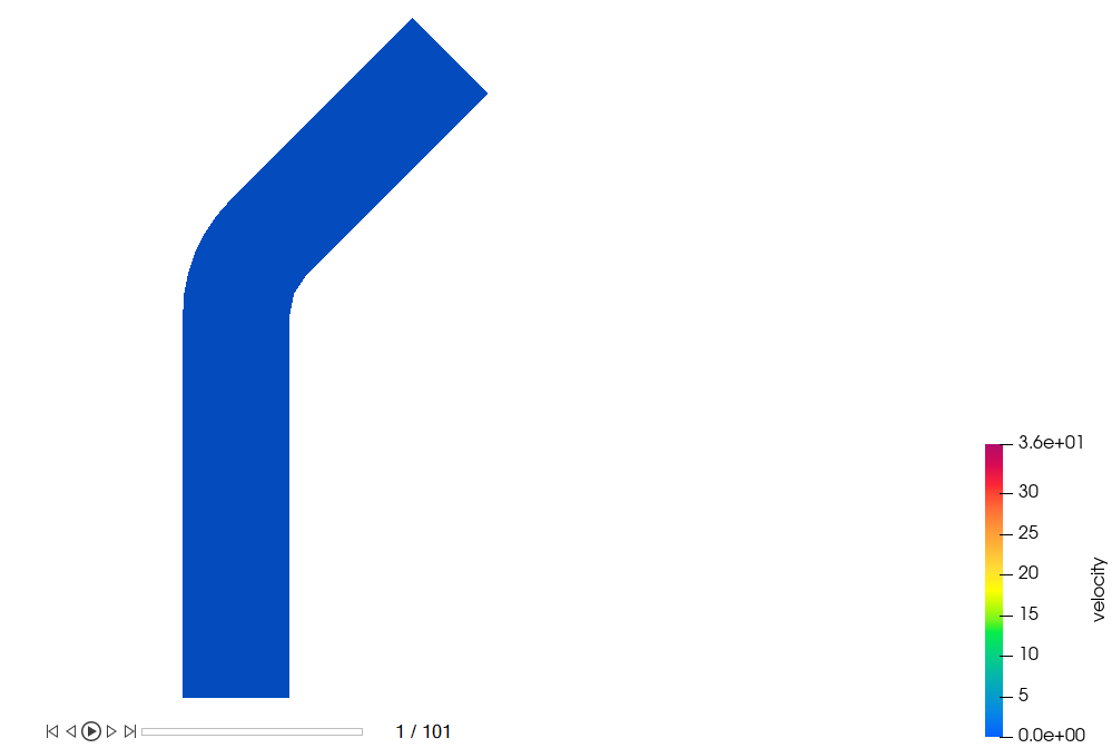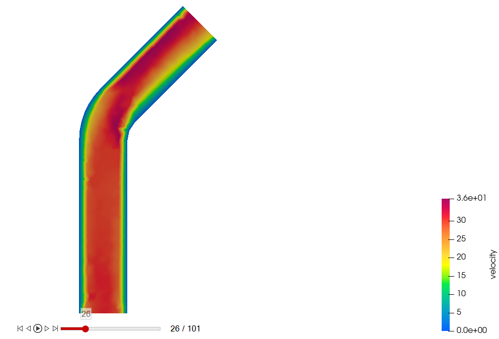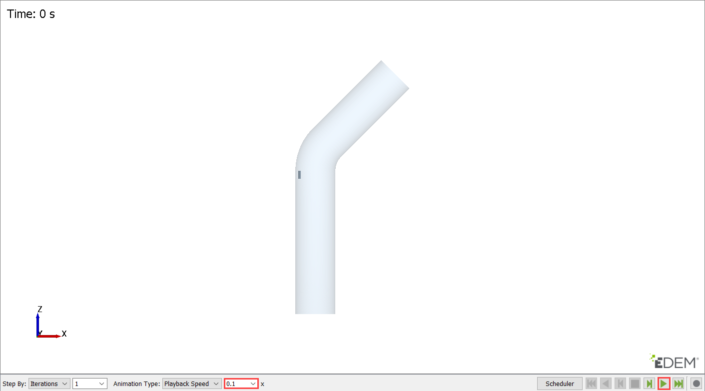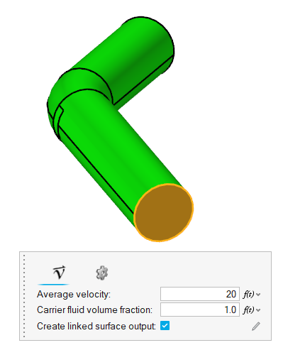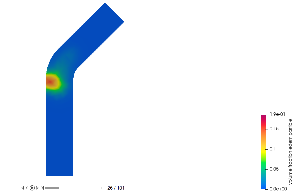 このモデルは45度に曲がった円筒管で構成されます。管の半径は0.25mで、粒子の入口は管全体の長さの中ほどに配置されます。