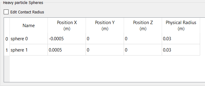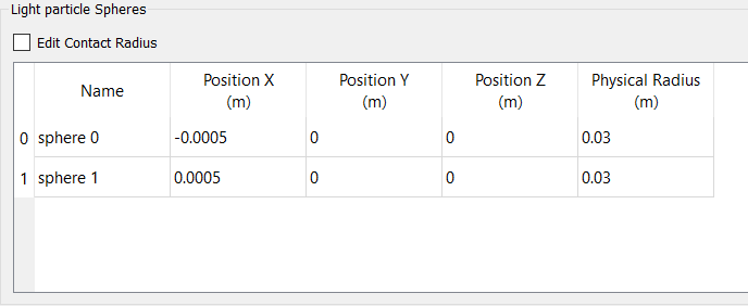 | 名前 | 密度(kg/m3) | 粒子半径(m) | 個々の粒子の平均重量(kg) | 生成率(1秒あたりの粒子数) |