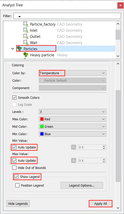 このチュートリアルでは、熱伝達による基本的なAcuSolve-EDEMの双方向(二方向)連成の問題を設定し、実行する方法を知ることができました。最初のパートでは、HyperMesh CFDでAcuSolveモデルを設定し、形状をエクスポートしました。次に、HyperMesh CFDによって作成されたEDEM入力ファイルをインポートして、EDEMモデルを設定しました。粒子の熱特性を設定する方法や、他の粒子や装置との相互作用について学びました。連成シミュレーションが完了した後は、HyperMesh CFD PostとEDEM Analystの両方でアニメーションを作成する方法を学習しました。