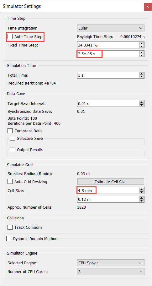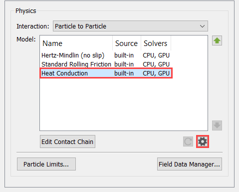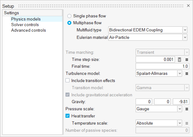 前述したとおり、AcuSolveシミュレーションの起動時に、HyperMesh CFDが一連のEDEMファイルを作業ディレクトリ内に作成しました。このEDEMの入力デックを開き、DEMシミュレーションを設定します。