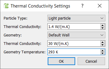 | 名前 | 密度(kg/m3) | 粒子半径(m) | 個々の粒子の平均重量(kg) | 生成率(1秒あたりの粒子数) |