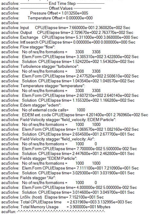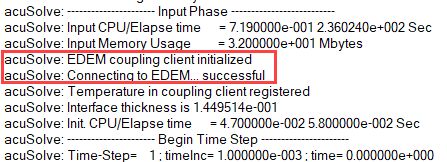 AcuSolveモデルはHyperMesh CFDを使用して設定します。AcuSolveの設定が完了したら、EDEMのデック(形状を含む)がHyperMesh CFDからエクスポートされます。この入力デックはEDEMで開かれ、EDEMの設定を実行するために使用されます。EDEMデックの設定の終了後、連成シミュレーションを起動します。