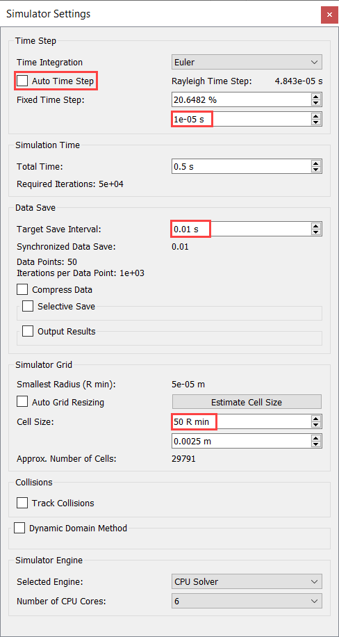 一般的なシミュレーションパラメータの設定