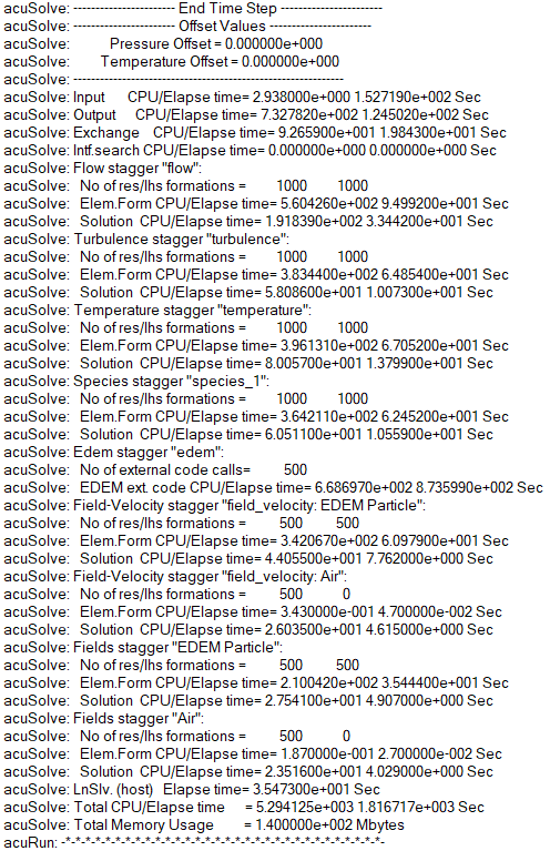 このチュートリアルでは、質量変換による基本的なAcuSolve-EDEMの双方向(二方向)連成の問題を設定し、実行する方法を知ることができました。特定の位置と内部間隔で粒子を作成する方法を学習し、スプレーの注入を定義する方法も学習しました。シミュレーションが完了した後は、結果を処理して、時間の経過に伴うコーティングの変化が表示されるようにしました。