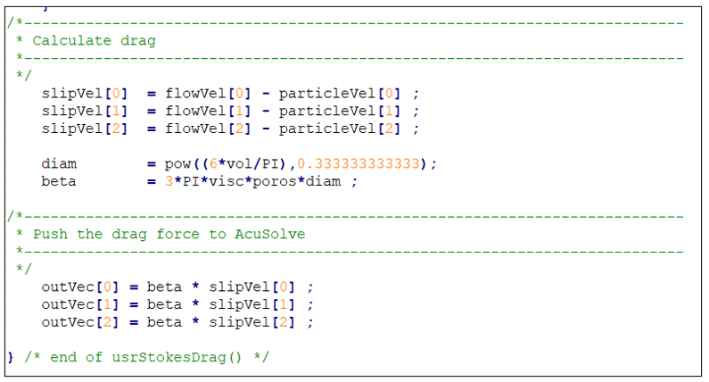 ヘッダーファイルが宣言されると、UDF_PROTOTYPE()マクロと、その引数としてユーザー関数の名前を使用して、ユーザー関数のプロトタイプを作成する必要があります(例: UDF_PROTOTYPE(usrStokesDrag))。