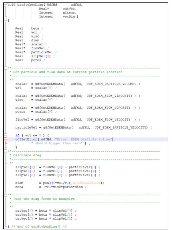 udfSetError( udfHd, "Error: EDEM particle volume"