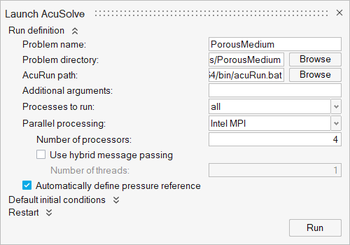 AcuSolveでは、体積平均速度法と物理速度手法の2つの手法のいずれかを使用して、多孔質媒体を解析できます。このチュートリアルでは、体積平均速度法を採用しています。これは、多孔質媒体での圧力低下を適切に表すことができます。ただし、多孔質領域での速度は多孔質領域外の速度と同じままであるため、多孔質領域での速度増加を予測することはできません。多孔質領域内の速度をより正確に表すには、物理速度手法を使用します。これは、固有平均法を使用して多孔質媒体内の連続方程式と運動量方程式を解きます。