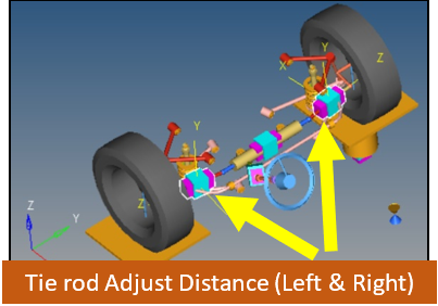 - 左右のコイルスプリングのプリロードとタイロッドの調整距離。