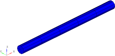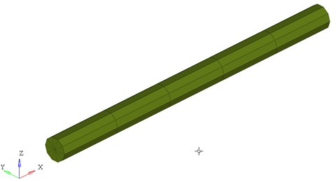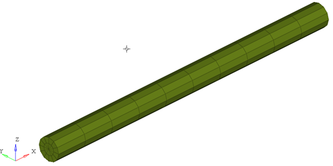 図 1. graph = 1の円形ビームの表現。注: graph="0"またはgraph="1"を使用する場合は、応力、ひずみ、または変位コンターを表示できません。これを行うには、graph="2"またはgraph="3"を使用します。- graph = "2"は、ビームが3Dソリッド要素で表現されることを意味します。このモードは、応力 / ひずみや変位のコンターを表示する場合に便利です。