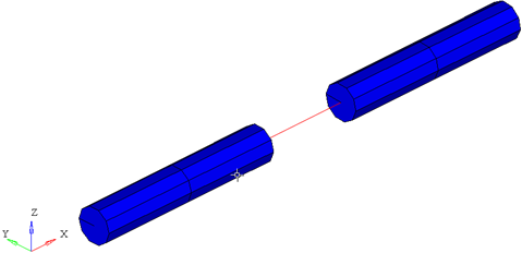 図 2. graph = 2の円形ビームの表現。ビームは3D要素で表現されている。 - graph = "3"は、ビームが3Dソリッド要素と、ビームの2つの節点を結ぶラインの両方として表現されることを意味します。これは、ビームの中心線と3D表現の両方を表示する必要がある場合に便利です。