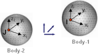 図 6. ORIENTATIONプリミティブORIENTATIONプリミティブは、3つの自由度(すべて回転自由度)を除去します。Body-2に対するBody-1の3つすべての並進が可能です。