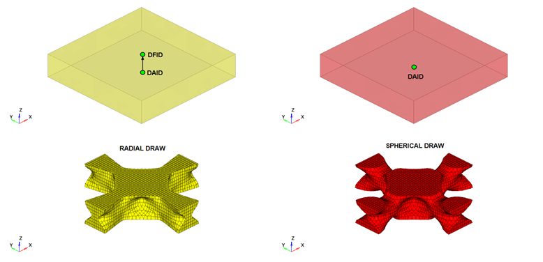 図 5. 放射状型抜き方向と球状型抜き方向 - 詳細については、ユーザーズガイドのレベルセット法をご参照ください。