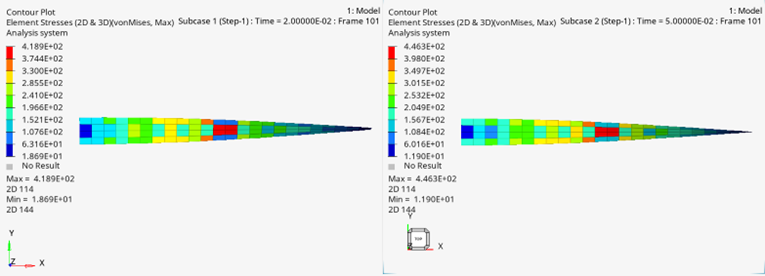 図 2. 要素応力コンター - 変位
