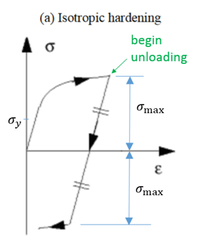 1次元のケースでは、材料は降伏応力後に強化されます。前回の引張りの最大応力がそれに続く荷重での降伏となり、この新しい降伏応力はそれに続く引張りおよび圧縮での降伏応力と同じになります。