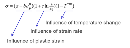 内部エネルギーの変化は、Johnson-Cook則で降伏応力に影響を与えます。