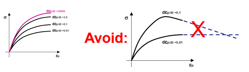 大きなひずみ速度の塑性応力-ひずみ曲線は、必ず小さなひずみ速度の塑性応力-ひずみ曲線より上になります。