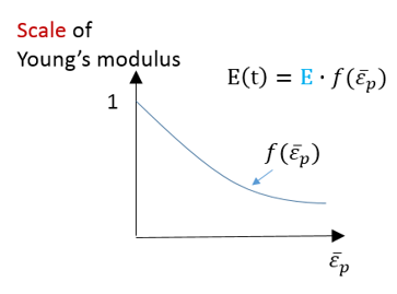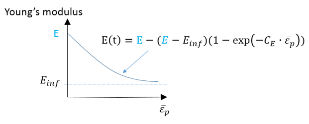 ヤング率は、オプションfct_IDEEinf、およびCEを使用して、除荷時に更新(低減)できます。この機能の使用により、ハイテン鋼のスプリングバックの精度(除荷相時)が向上します。この機能は材料LAW43、LAW57、LAW60、LAW74およびLAW78でも使用できます。