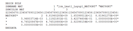 Figure 18. Homogenized Composite Properties in OptiStruct MAT9ORT Format