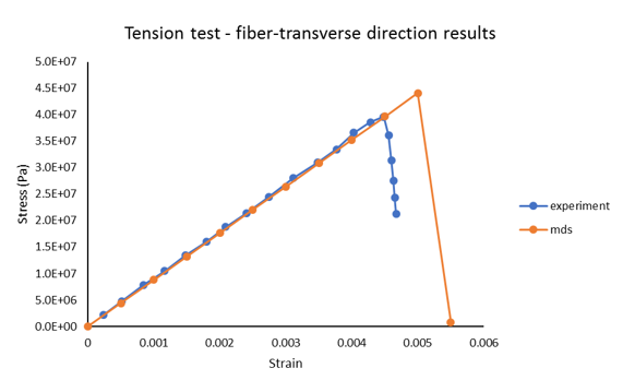 Figure 17. Stress-Strain Curve. fiber-transverse tensile test from Multiscale Designer and experiment