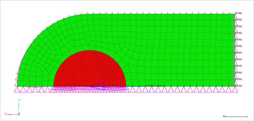 Figure 1. FE Model with Boundary Conditions and Loadcases
