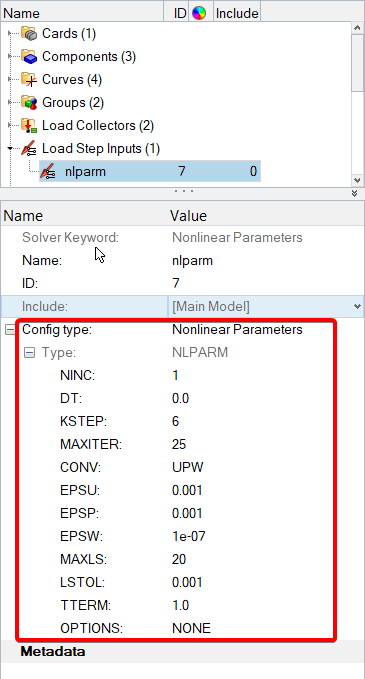 - Below CONTF, DISPLACEMENT, STRAIN and STRESS, set Option to Yes.