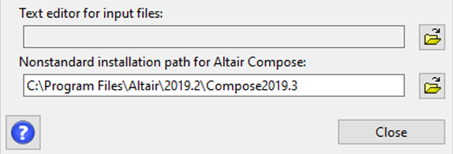 If Altair Compose needs to be invoked during the OptiStruct job in case of external responses (DRESP3), the installation path for Compose must to be specified by the user.