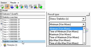 Various statistics can be chosen from the sub-menu under Stress Statistics(s).