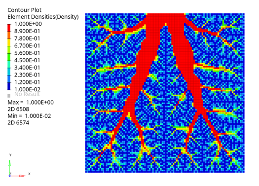 Figure 2. Final Optimal Design Results. in a tree-like structure and the plot of element densities