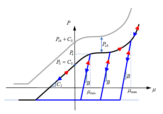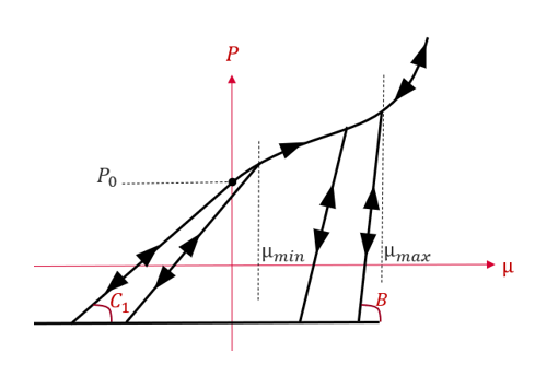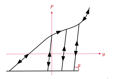 Unloading and reloading are made along straight line whose slope is B.- Psh
