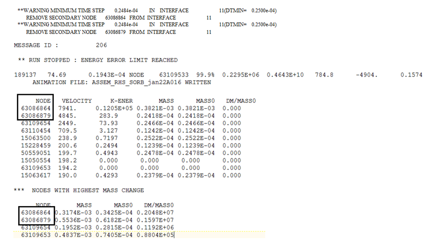 **WARNING MINIMUM TIME STEP 0.248E-04 IN INTERFACE 11(DTMIN= 0.2500E-04)