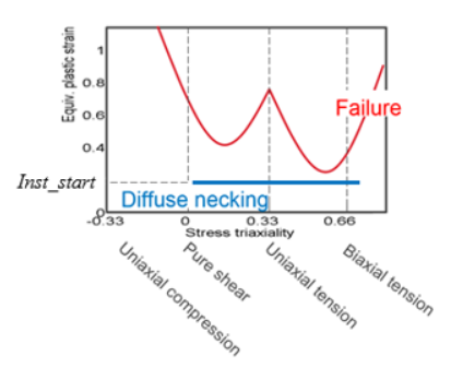 - Damage due to diffuse necking starts when the plastic strain defined by the blue curve in Figure 13 is reached.