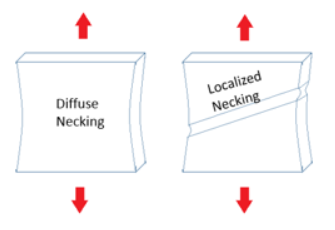 In /FAIL/TAB1 it is possible to account for the material instability (diffuse necking) with options table_ID2, or Inst_start and Fad_exp.