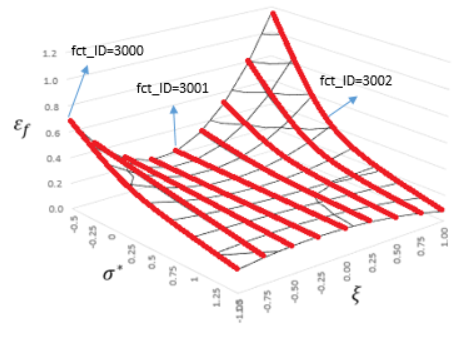 This can be included by adding failure strain as a function of Lode angle parameter in the /TABLE entity referenced by table_ID1. For shells elements, it is only necessary to define the failure strain as a function of stress triaxiality. But for solid elements, it is more accurate to include the failure strain as a function of stress triaxiality and Lode angle.