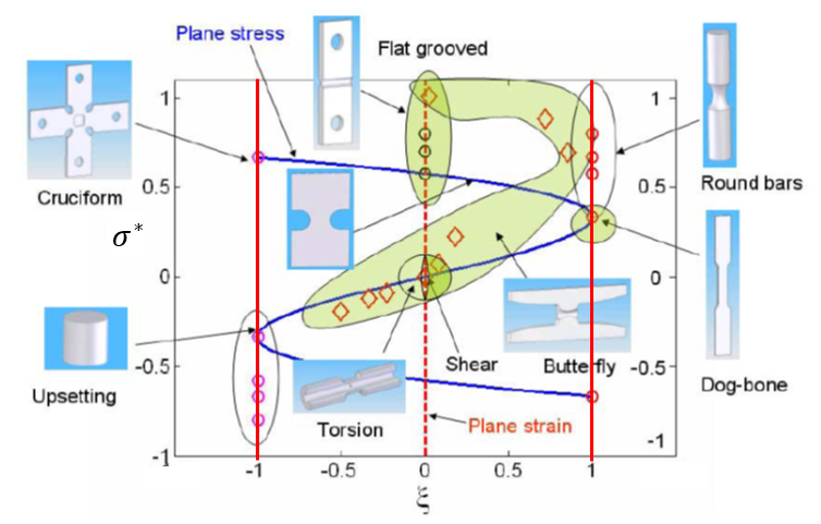 | 1 | 0 | Uniaxial tension + hydrostatic pressure (triaxial tension or axisymmetric tension) |