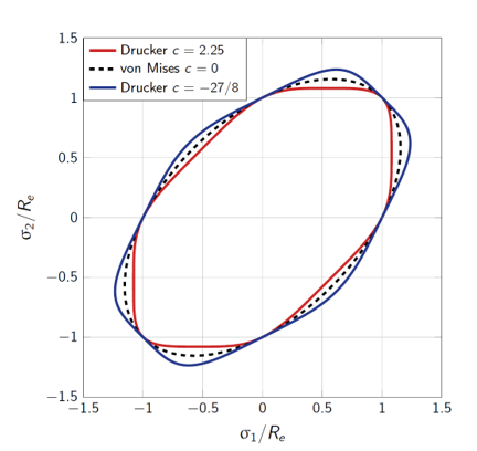 The parameter is user-defined and allows to define several yield surfaces (Figure 1). To respect the convexity, its value must respect -27/8 ≤ CDR ≤ 2.25.