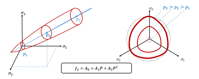 Figure 2. Extended Drucker-Prager Yield Criteria Implemented in Radioss - Extended Drucker-Prager