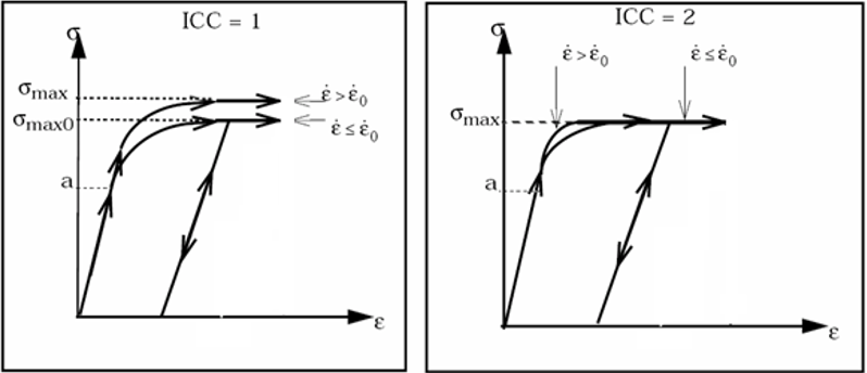 - This law allows the modeling of material damage and brittle failure in two principal directions (1 and 2).