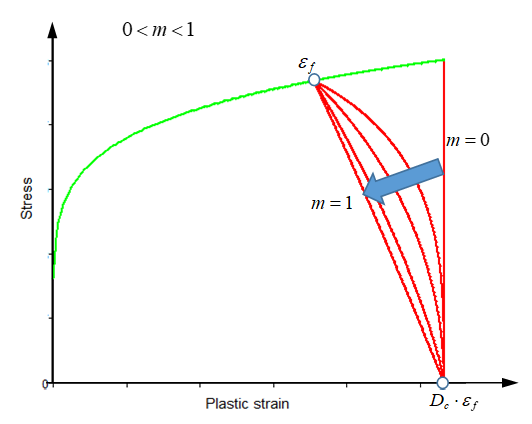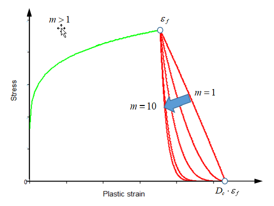 If m > 1, then the softening curve is concave. The softening is between and . Once the plastic strain is reached (in this case ), then the element is deleted.
