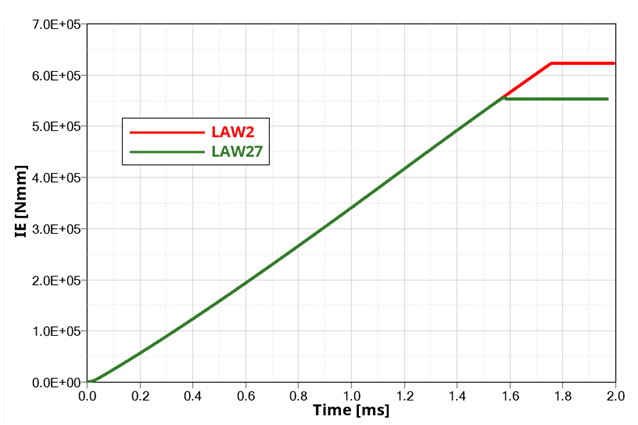 the internal energy at failure is different for LAW2 and LAW27, due to