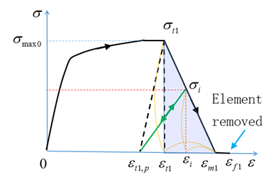 deleted once it reaches the maximum plastic strain defined in the model. Unlike