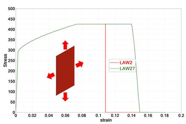 In order to show the difference between LAW2 and LAW27, uniaxial and eqibiaxial loads