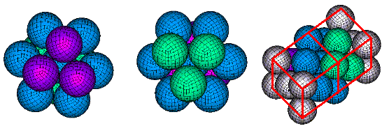 Figure 1. Local View of Hexagonal Compact Net and Perspective View of Cubic Centered Faces