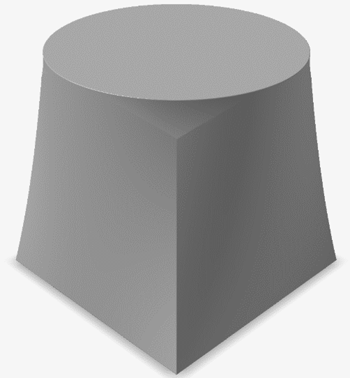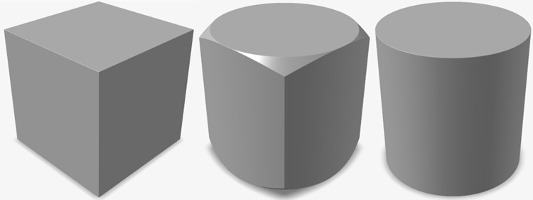 变形值应介于 0 和 100 之间,这控制着主体 A 和主体 B 的底层场之间的线性插值。一个说明性的例子是叠加一个立方体(主体 A)和一个圆柱体(主体 B)。变形值为 0 将产生立方体(主体 A)的完美副本,变形值为 100 将产生圆柱体(主体 B)的完美副本。变形值为 50 将生成一个新的隐式主体,该主体同时具有球体和圆柱体的某些属性(见下图)。在每个位置,变形操作会查看主体 A 的场标量值、主体 B 的场标量值以及该位置的变形量(百分比)。变形量会指定权重,该权重控制变形后的标量值是更接近该位置的主体 A 还是主体 B 的标量值。因此,变形量可以成为由用户指定的场控制的场驱动属性。在这种情况下,生成的几何体看起来更像主体 A 还是主体 B 由在本场地定义。在下图中,场驱动设计用于在长方体和圆柱体之间平滑变形,变形量在顶面和底面之间增加。