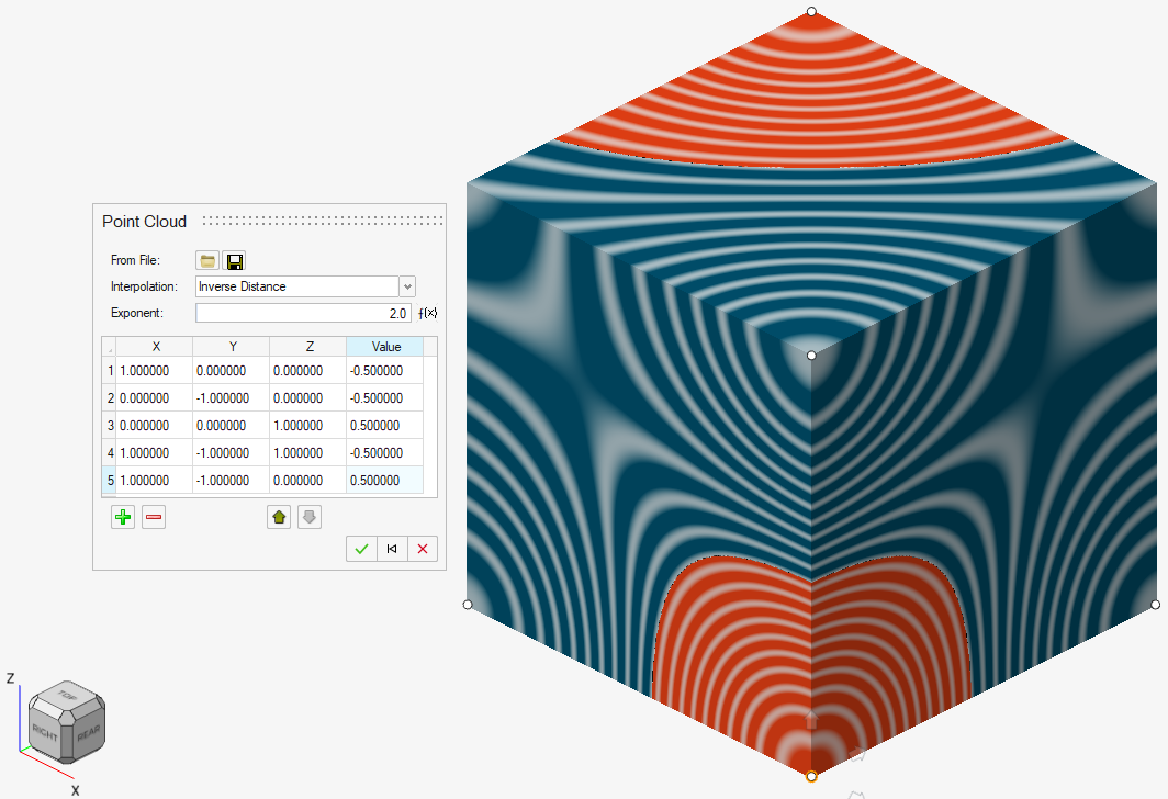 图 6. 使用最近邻插值法对标量场进行插值的示例. 对于相同的点云配置显示了此效果。您会注意到,配色方案中没有条纹,因为场中没有平滑的变化。