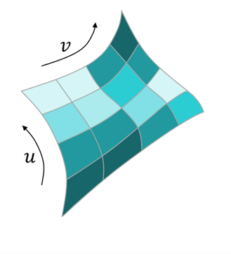 ![]() 图 1. 参数化曲面补块(例如 NURBS) |