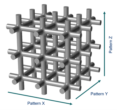 - 然后在 1 维、2 维或 3 维上对该单位单元格进行图案化以形成格栅结构。