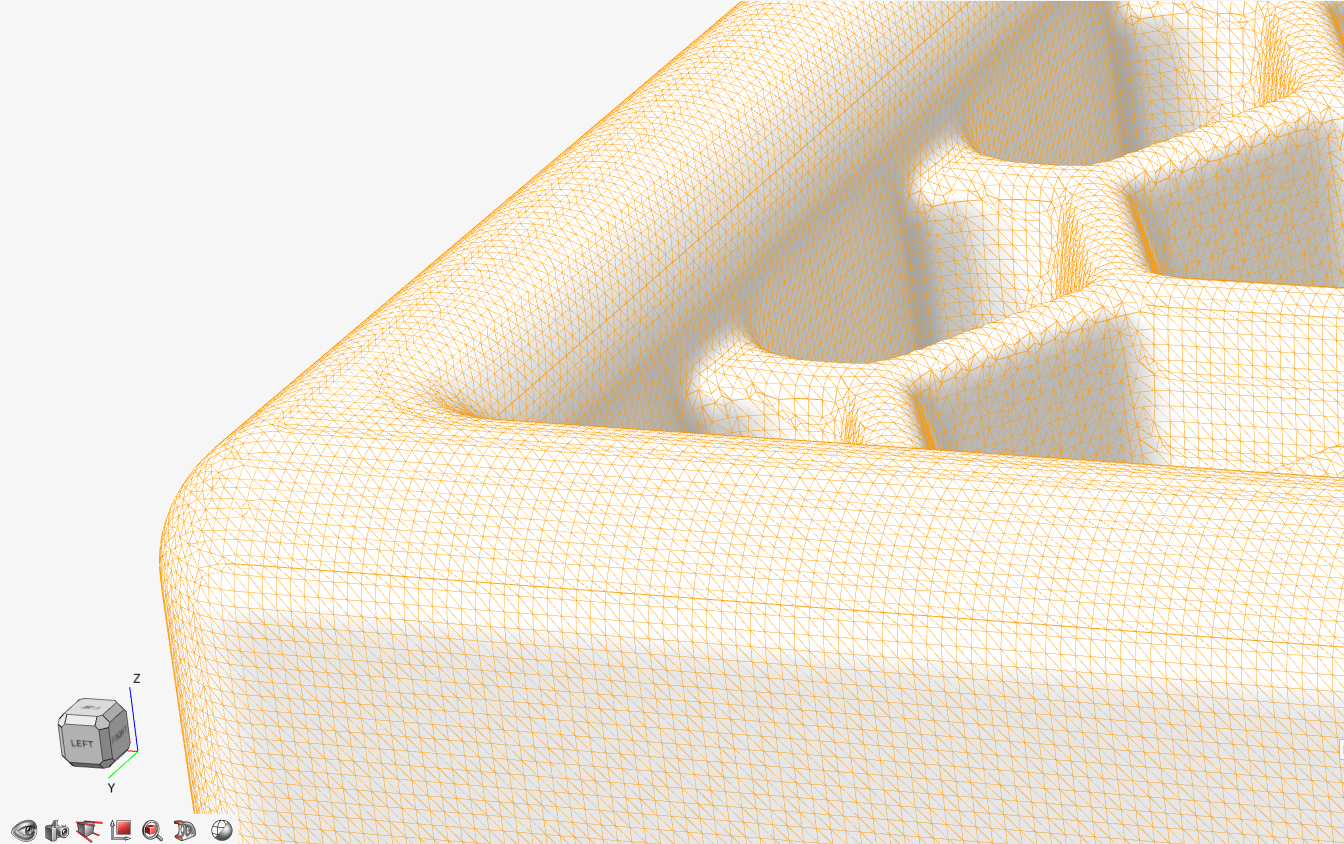 首先,您应该注意,转换中生成的网格质量与隐式建模期间使用的可视化质量设置直接相关。如果使用“极高”设置,三角形网格将非常精细,如下图所示。使用越来越低的可视化质量设置将产生越来越粗糙的网格。