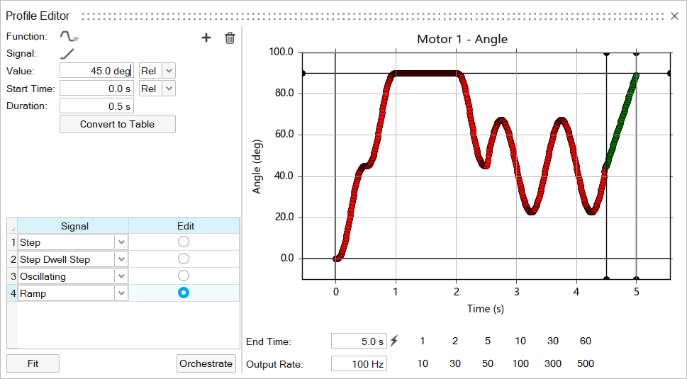 通过轮廓编辑器中的多信号函数类型,您可以在单个运动分析期间快速、轻松地定义由多个基于时间的变化组成的的转动电机和平动电机输入。
