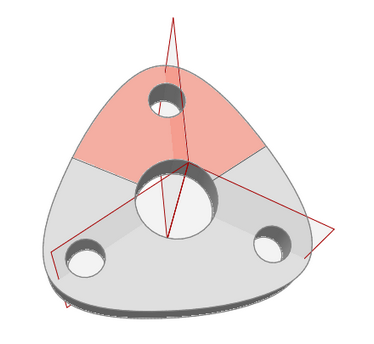 图 1. 以对称为基础的周期重复. “以对称为基础的周期重复”可创建以红色放射平面为对称面的自对称分段。红色阴影区是其中一个分段。