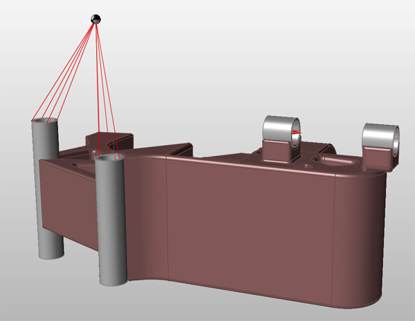 创建集中质量时,通常需要使用连接器将该零件与模型中的几何特征相连接,如下图红色几何特征所示。